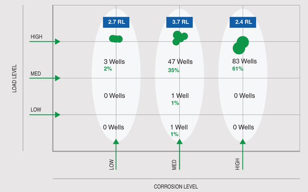 Figure 1 shows the grouping of the installs in loading versus corrosion level and the resulting run life increase for each batch of wells. The performance was aligned with the expectations from end- users for a 2x run life improvement in all corrosion levels at high loading ranges.