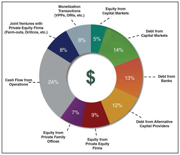 Private money–both equity and debt–remains a major source of both operating expenses and capital expenses for independents. There seems to be plenty of money, plenty of limited partners willing to invest and no reluctance by general partners or management firms to lather, rinse and repeat with experienced management teams, according to Adams.