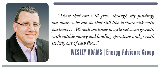 “Teams that have made significant money for their backers tend to get taken care of until either the money tires of the space, the management team dissolves or it just cannot find any good projects,” Adams says. “I think that capital realizes that oil and gas is not going to be replaced any time soon, so providers want to be ready to act when the next price spike occurs or when a downturn occurs and they can buy assets cheaper.”
