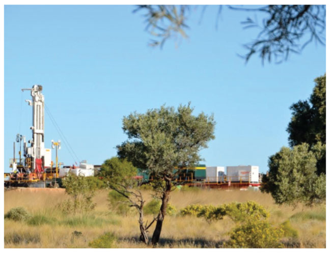 PetroFrontier has three developmental wells under way. The Baldwin No. 2Hst1 well location, shown here, is in the central part of the company’s expansive acreage position in the Georgina Basin in the Northern Territory. The horizontal well was drilled with a 2,950-foot horizontal lateral.