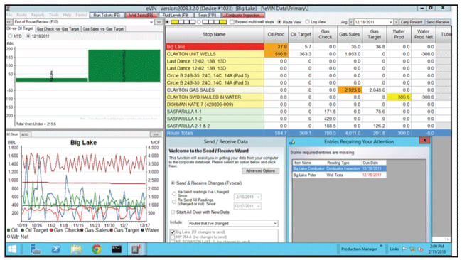 Field data are available now in near real time to all departments through a powerful visualization tool, Zickuhr reports. He says the company has digital lease operators gauging tanks, measuring strokes per minute, and entering surveillance data. In addition, data are collected automatically and are transferred by a SCADA network, complementing the operator data.