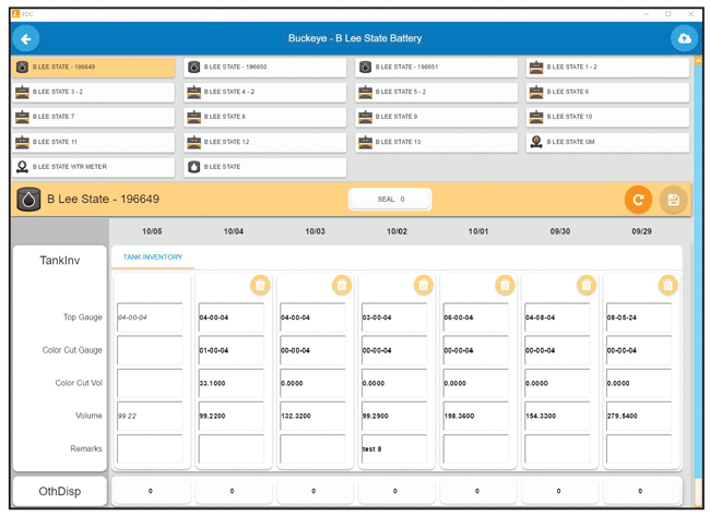 Enertia has developed a field data capture application for both Apple® iOS and Android® mobile devices. The app allows personnel to collect information in the field and automatically sync the data to the integrated production/accounting system for automatic allocation calculations and reports, enabling faster and more accurate analysis. This screen capture from the app shows sample entry and inventory data for a tank battery location.