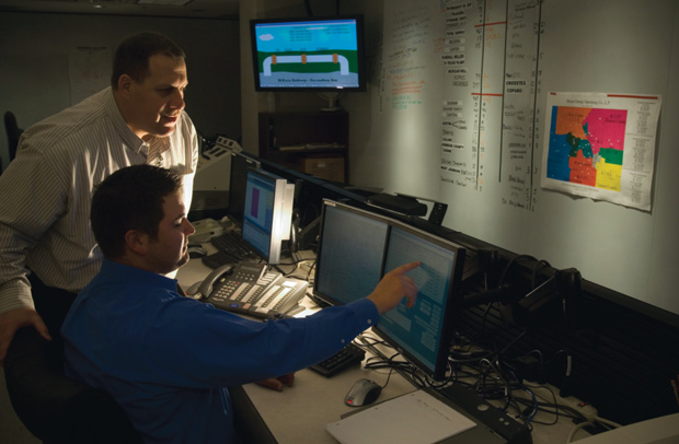 At Devon, we have a central control room for our gathering and pipeline operations that span Texas, Oklahoma, Louisiana, Wyoming and Montana. Operating 24 hours a day, seven days a week, the control room can “see” the status of every meter, review historical data by meter, and compare flow rates across meters. We also can open and close remotely-actuated valves and make other operational adjustments in real time from the center in Oklahoma City. We can implement both short-term tactical decisions and longer-term actions for optimizing overall system performance.
