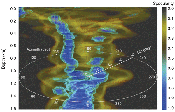 This technology has been applied successfully for velocity model determination and depth imaging in complex geological areas (Figure 2), as well as in unconventional shale regimes, to detect subsurface stress patterns and intensity, and to identify small fractures. Figure 3 shows a continuous full-azimuth reflection angle gather, unwrapped over the azimuth and opening angle. The azimuthal variation of the moveouts indicates the fracture orientation.