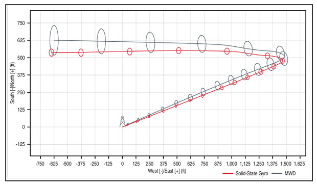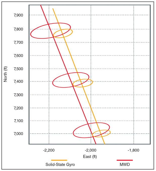 While typically MWD surveys had been sufficient, the operator’s application in this instance required extremely tight and accurate lateral spacing to be successful. With the objectives of minimizing survey error and ensuring precise well spacing, the operator decided to implement the solid-state gyro system based on its ability to survey at all inclinations with much higher accuracy than otherwise available (Figure 3).