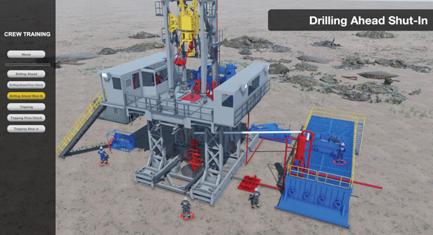Once the well is shut in, the supervisors and engineers can take over to safely resolve the situation. In a two-hour class, this mobile training solution instructs the very people who are the first to see an influx, and often the people who are the least trained to recognize and react to it. The crews are trained with their own team members on their own rigs so they can talk about how their teams manage kick detection and shut in. The ability to learn within the context of one’s own crew and rig setting lowers the risk of a blowout and the catastrophic results.