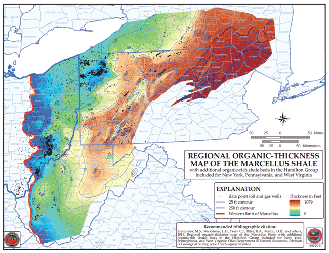 Engelder notes that although there are some areas such as Washington County in southwestern Pennsylvania in which both formations are equally attractive, there are many other areas in the Appalachian Basin where the Marcellus will be the only target, and other areas where only the Utica will be prospective.