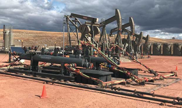 The horizontal desanders in front of these pumpjacks protect downstream facilities from sand-induced damage by temporarily slowing the production stream’s velocity so gravity can force the sand to settle out. With no moving parts or consumable components and a large storage capacity, Specialized Desanders says the gravity desanders are reliable and easy to operate.