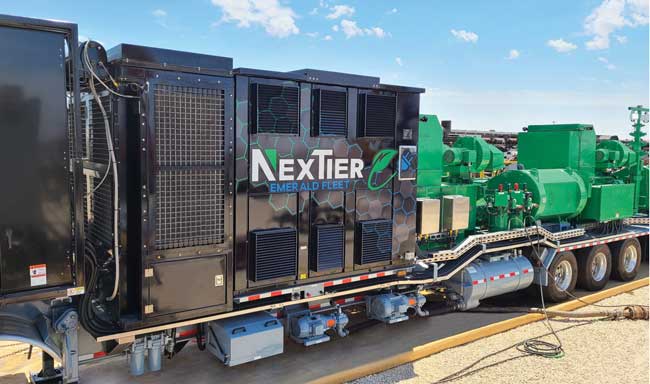 Electric hydraulic fracturing pumps such as this one are being deployed in spreads that primarily contain dual-fuel pumps. According to NexTier Completion Solutions, this hybrid approach makes it easier to optimize loads across pumps, which improves efficiency and performance.