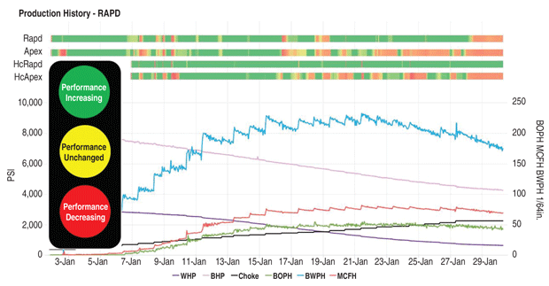 In an unconventional well, the drawdown rate can change every four hours, says Christina Costello, Revo’s executive vice president of business development. “To show when a change needs to be made, the software uses colors. Green means drawdown can be accelerated, while red means it needs to be restricted,” she illustrates. “This makes it easy for both engineers and field hands to see when they are producing the well as aggressively as possible without causing damage.”