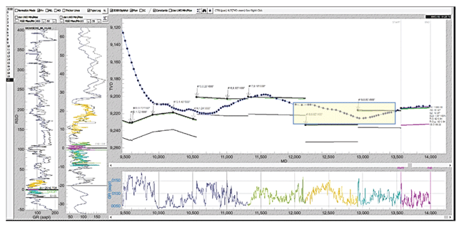 The log in Figure 1 shows the pay target in the Granite Wash “F” section. The horizontal target was moderately tight with a net height of 20 feet. Figure 2 shows the well path, with the uncemented 1,600-foot section highlighted.
