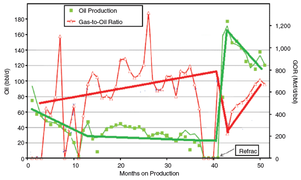 However, as gas and oil shales slowly moved from being a drilling nuisance to an oil and gas bonanza, operators found that the sharp production decline common in most naturally fractured formations could be reversed, even if only for a short time, by refracturing the same zone.