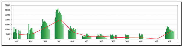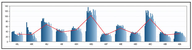 Further probing the tracer response within a single segment provides insights into how that segment of the frac fluid was being recovered. This type of analysis can be seen visually with Segment 48K and Segment 48G (Figures 3 and 4). The response for Segment 48K exhibits a mostly decreasing profile, with the highest concentration occurring in the first sample. On the other hand, Segment 48G increases from a low number at the first sample and peaks at the fifth sample and then decreases over time. A more quantitative characteristic of these types of responses is necessary to be able to determine just what each type means.