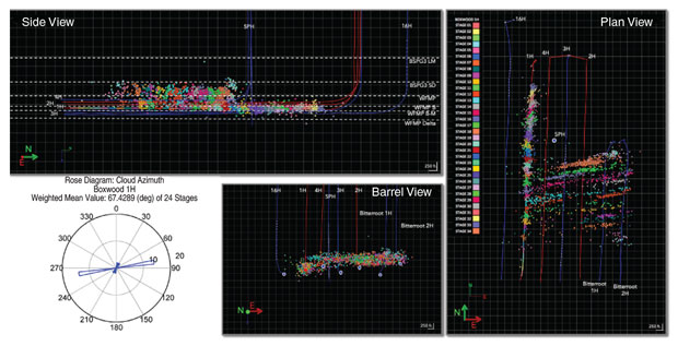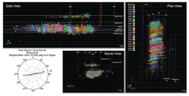 The microseismic data was collected as part of a program aimed at supporting continued advances in hydraulic fracturing efficiency, which already have helped make the Wolfcamp the largest continuous oil and gas formation in the United States. The data was acquired during the completions of three Wolfcamp wells–the Boxwood 1H, 2H and 4H–that were stimulated sequentially.