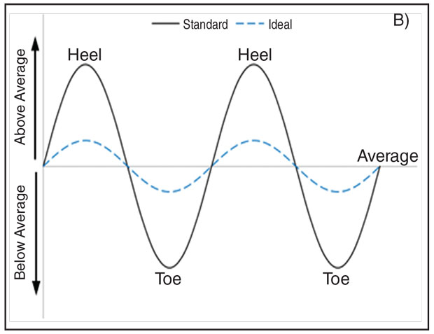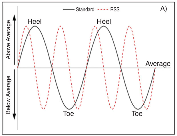 This results in proppant distribution along the length of a well mimicking a sine wave, where higher sand loading is associated with the dominant clusters in the stage’s heel, and lower corresponding to the understimulated toe clusters. Reduced stage spacing increases the uniformity of proppant distribution along the length of a lateral by effectively decreasing the period of the sine wave, thereby compressing the over- and understimulated intervals (Figure 1A). However, a more straightforward way of distributing proppant uniformly is to decrease the amplitude of the sine wave (Figure 1B).