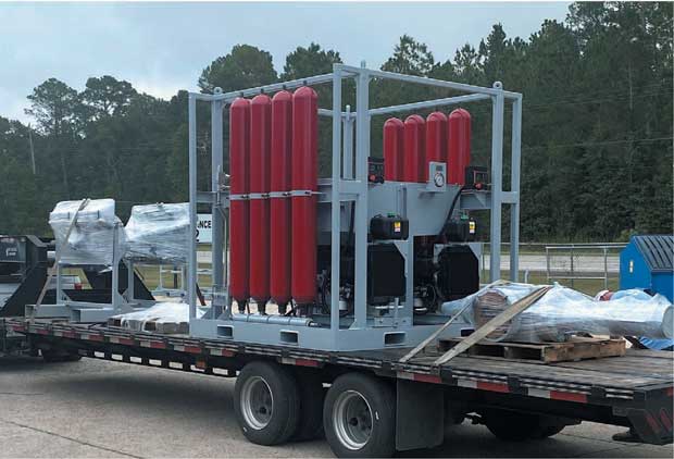 Eliminating conventional accumulators and associated components also reduces risk of equipment-related downtime without sacrificing redundancy, DeGeare says. “Our HPU has two engines, two auto-start systems and 50% more accumulator bottle capacity than required, plus an air backup system,” he describes. “Frac companies can be confident operating without a second HPU for backup.”