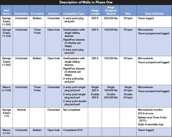 For the initial phase of the study, specialty log, core and microseismic data were acquired in four laterals with varying completion and isolation types, and in the S-shaped well. Table 1 depicts the role that each well played in the first phase.