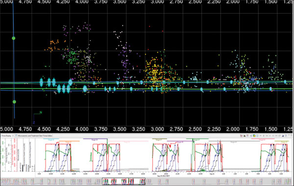 Each stage of microseismic data was scrutinized individually to ensure events were representative before any conclusions were made. Information from the core, 3-D seismic, tracer data, and wellbore placement in the zone were considered in interpreting microseismic.
