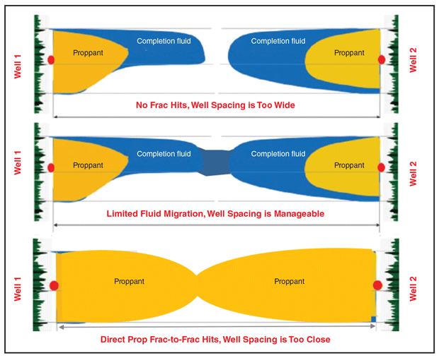 Given that a certain degree of interwell communication is desirable, the optimal solution for promoting hydrocarbon flow and EUR combines fluid migration with poroelastic interaction, while avoiding a direct hit between two sand-filled fracs. This is where the new-generation smart tracers and a surgical approach to precisely diagnose the type and severity of a frac hit play a vital role in spacing tests to enhance reservoir performance.