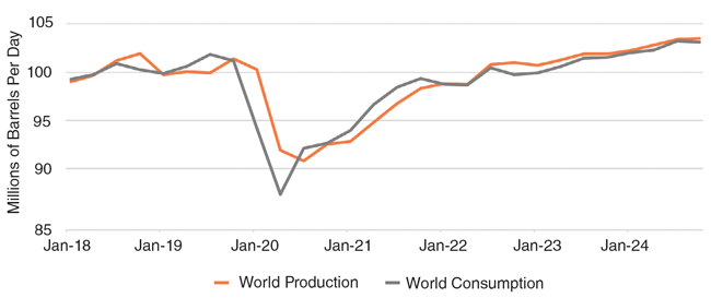 In its March 2023 Short-Term Energy Outlook, the U.S. Energy Information Administration predicts global liquid fuels consumption will increase 1.5 million barrels in 2023 and another 1.8 MMbbl in 2024, boosting consumption beyond pre-pandemic levels. With global liquids production expected to remain in rough equivalence with consumption, the near-term outlook is constructive and bodes well for the industry.
