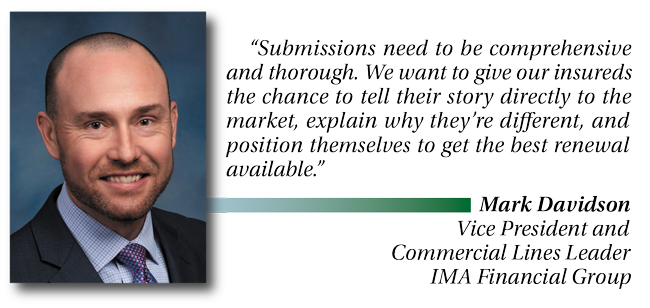“Submissions need to be comprehensive and thorough,” Davidson says. “We want to give our insureds the chance to tell their story directly to the market, explain why they’re different, and position themselves to get the best renewal available.”