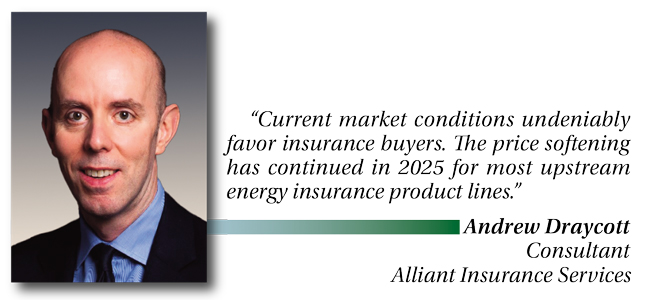From a national and global perspective, London-based Alliant Insurance Services sees upstream insurance continuing to tilt in favor of well-run independents. Andrew Draycott, a consultant at Alliant, says the shift is clear. “Current market conditions undeniably favor insurance buyers. The price softening has continued in 2025 for most upstream energy insurance product lines. Underwriters have looked to balance various competing dynamics: Their own growth and profitability requirements with increased capital in the segment versus fewer individual upstream U.S. oil and gas buyers (post continuing M&A activity) and a benign loss environment.