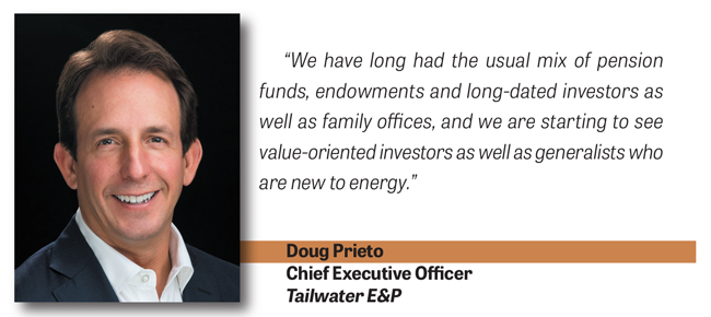So reading the tea leaves, are more deals like those both between oil and gas companies on the horizon? Most assuredly, responds Doug Prieto, chief executive officer of Tailwater E&P, which is an integrated business of Tailwater Capital.