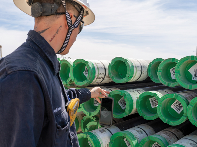 The QR codes on these thread protectors provide easy access to each pipe’s technical specifications, including running guidelines. Scanning the codes allows one or two people to create digital tallies, eliminating the need for manual measurement.