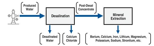 Other solutions to the over-abundance of produced water are desalination and mineral extraction, two distinct processes that are often paired because the latter generally involves the former (Figure 1). Desalination of seawater has long been viable and even necessary in regions where water is scarce, such as the Middle East, but produced water poses additional challenges. With research and development accelerating over the past couple years, the hope is that new techniques will be affordable and scalable enough to significantly reduce the strain on freshwater supplies in water-stressed regions.