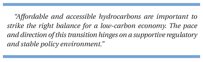 According to the study, affordable and accessible hydrocarbons are important to strike the right balance for a low-carbon economy. The pace and direction of this transition hinges on a supportive regulatory and stable policy environment, coordinated partnerships and innovative business models.