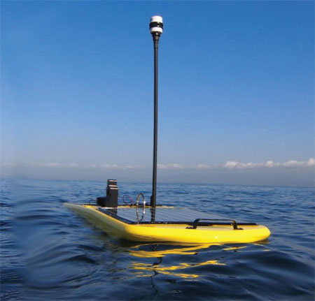 Monk says Apache has been looking at a similar concept that uses a surface unit on a small platform that looks like a surfboard. The unit can be steered remotely through an Internet connection and tows a small set of receivers. Together, a group of these may move around like a shoal of fish.