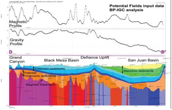 In Utah’s San Juan Basin, well control, gravity and aeromagnetics were combined to create a 2-D structural model that helped operators evaluate the prospectivity of the neighboring Black Mesa Basin.