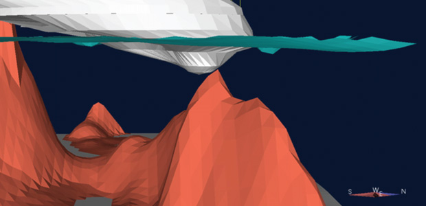 One approach is to combine the geologic model with the interpretation model. In this approach, Leahy says, the geomodel is built during the interpretation, and the uncertainty envelope represents unknown variability below the seismic resolution. “If you were building a single model, you could miss some detailed structure not visible in the data,” he observes. “However, using the uncertainty envelope, you can construct many realizations of the subsurface and get a distribution that captures fine scale detail as needed.”