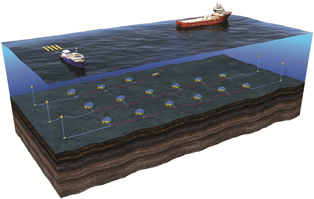 Advanced ocean-bottom nodal systems balance the competing exploration objectives of high-quality imaging, large-scale affordability, acquisition efficiency and minimal health, safety and environmental impact. Placing autonomous, cable-free nodes on the seafloor to acquire data allows operators to circumvent the surveying constraints and operational issues associated with towed streamers, while capturing previously unavailable data, even in areas in mature offshore basins with dense infrastructure.