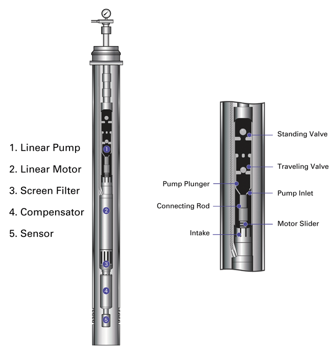 Linear electric submersible pumps can be an attractive option for handling low flow rates from deep wells with sharp curves that would put considerable strain on a rod string, Levare says. They also shine when operators want to minimize their footprint or noise at surface.