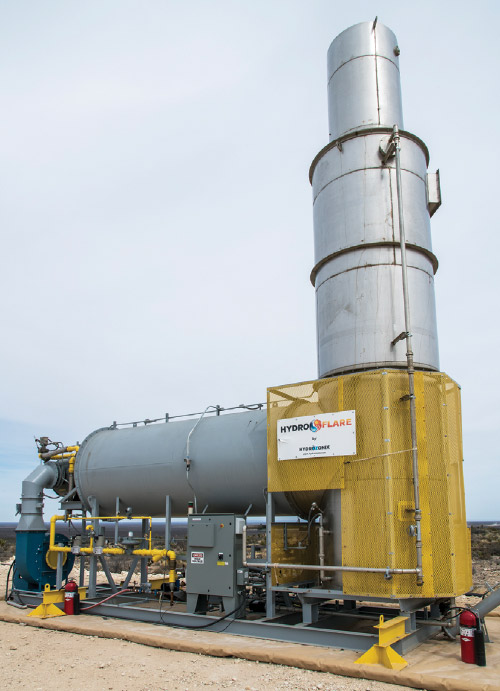 To help producers minimize truck traffic and water disposal volumes in areas without recycling infrastructure, Hydrozonix reports it has developed an enclosed flare that uses produced water to scrub emissions. The heat generated by the gas combustion converts the water into steam and returns it to the hydrologic cycle.