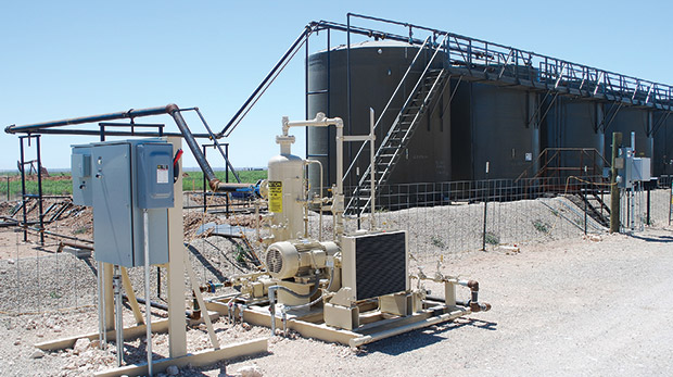 A vapor recovery unit (VRU) is essentially a compression system that collects and compresses low-volume gas streams for injection into the suction of a larger compressor, a meter run, a local site fuel gas system, or directly into a sales gathering line. To appreciate the full benefits of vapor recovery, operators must understand that vent gas is a product that has value and is not merely a compliance issue. The value of capturing vent gas to route to the sales line or use to power facility operations instead of venting or flaring has been documented many times in VRU field operations.