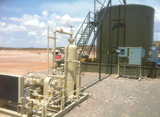 Given the multiphase nature of horizontal resource plays and the soaring production of associated gas from “tight oil” reservoirs such as the Wolfcamp and Bakken, one of the biggest application areas for VRUs is recovering vapors and flash gas in crude oil, condensate and water storage tanks at pad production sites and centralized treatment facilities.
