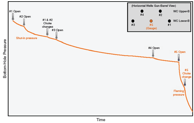 The varying degree of response among the five gauges provides drastically increased understanding of horizontal well depletion with respect to distance, direction and time–all of which improve the understanding of the fracture system feeding the well.