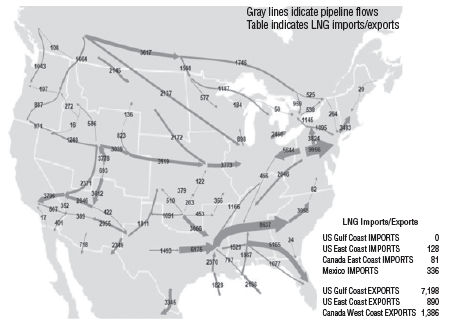 Shale gas production growth is forecast to be robust, motivating the development of new natural gas infrastructure. In fact, onshore shale plays should account for two-thirds of all North American gas production by 2020, growing to nearly 75 percent by 2035. A substantial portion of that new natural gas production will continue to contain relatively high liquids contents. Associated gas production from oil wells could reach as high as 19 Bcf/d by 2035, which would represent an increase of 2.6 Bcf/d.