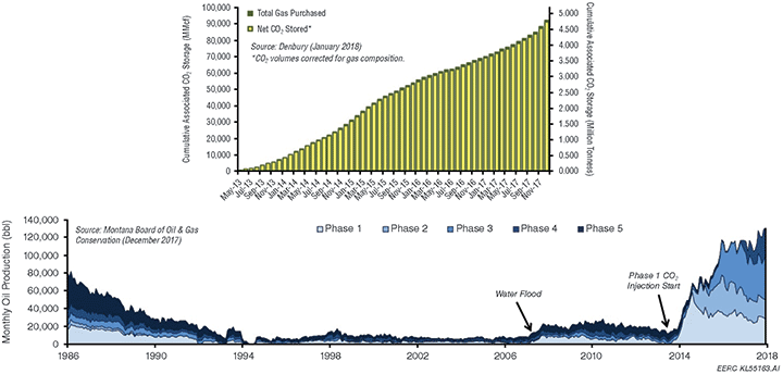 Between the beginning of CO2 injection in May 2013 and December 2017, more than 4.8 million barrels of incremental oil have been produced from the field, resulting in more than 4.8 million metric tons (tonnes) of associated CO2 storage (Figure 2).