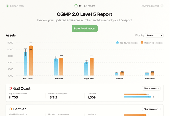 “We have built our emissions accounting platform to comply with voluntary initiatives, such as the Oil and Gas Methane Partnership,” she says. “Many of these initiatives require companies to compare emissions factors with actual emissions and to assign confidence levels to those measurements. In other words, how certain are they, and how big are the error bars?”