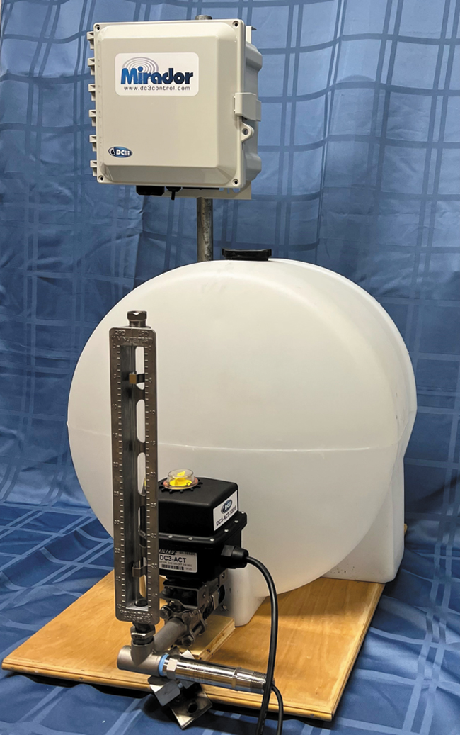 DCiii’s equipment replicates the steps chemical technicians or pumpers normally take if they manage sites manually. “When technicians get to a site, they walk up to the chemical tank, isolate a sight glass off to the side and watch the pump run to figure out how quickly it’s injecting. Then they adjust the pump to match the prescribed injection rate, which is often written on a clipboard,” Hammond describes.