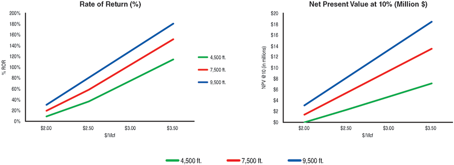 The impressive IRR comes in part from low transportation and gathering costs. “From 2008 to 2012, the industry built more pipelines in the Haynesville than it needed,” Allison recounts. “When gas prices were consistently reaching $5-$7 an Mcf, several large operators bought leases for $30,000 an acre. They made long-term commitments to ensure they could get their gas to market.”