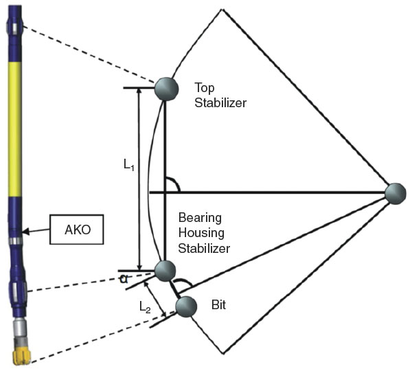 A steerable motor system with an AKO can be run in an oriented mode or in a rotary mode. In the oriented mode, the system produces a predetermined wellbore curvature. In general, this wellbore curvature is based on a three-point geometric model (Figure 1).