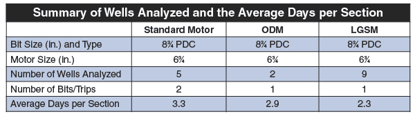 Table 2 summarizes the results of the curve sections of the wells drilled. Eliminating one trip requirement compared with the standard motor led to one day saved when drilling with LGSM, while the higher ROP in the vertical and curve sections helped save more than half a day, compared with the ODM (Table 3).