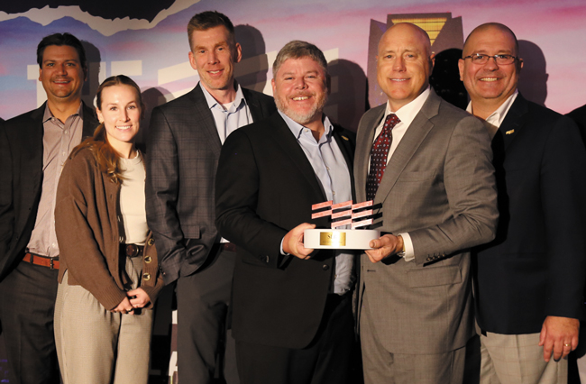 SLB was honored as the Petroleum Alliance of Oklahoma’s 2025 Ally of the Year at this year’s fall conference. The Alliance said SLB has demonstrated outstanding commitment to the state’s oil and gas industry, helping to advance the Petroleum Alliance’s mission through collaboration and continued support. Accepting the award is SLB Managing Director Andy Horner, with Alliance President Brook Simmons doing the honors. Also pictured, from left, are SLB’s Dustin Smith, Madison Kilcrease, Nate Rose, and Allliance Vice Chair Chuck Duginski.