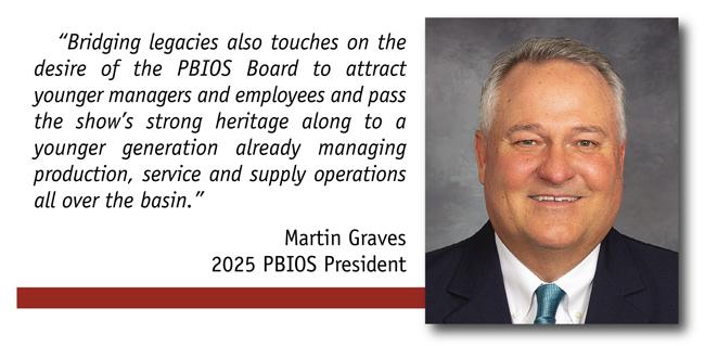 “Bridging legacies also touches on the desire of the PBIOS Board to attract younger managers and employees and pass the show’s strong heritage along to a younger generation already managing production, service and supply operations all over the basin,” he says.