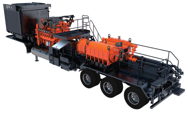 A fully integrated hydraulic fracturing pump system from EPIX, a joint venture between Weir Oil & Gas and Rolls-Royce Power Systems subsidiary MTU, helps operators run longer laterals in horizontal wells. According to the company, the system consists of a SPM® QEM 3000 hydraulic fracturing pump, ZF 8 TX transmission system from ZF Friedrichshafen Group, and an MTU Series 4000 engine.