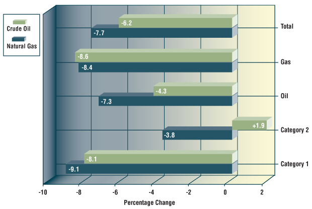 In AOGR’s survey, category 1 (least active) drillers projected the largest crude oil and natural gas production drops of 8.1 and 9.1 percent, respectively (see Figure 3). Category 2 drillers report a 1.9 percent increase in first quarter oil production year over year, and a 3.8 percent drop in natural gas production.